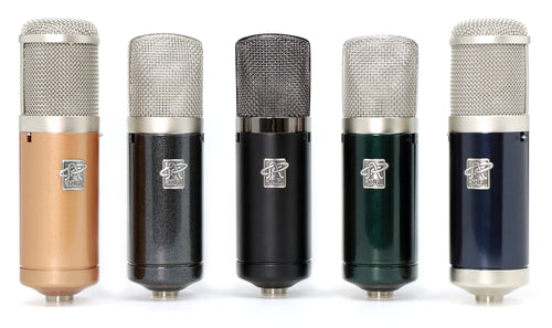 Custom finish options for these mics are produced in small quantities. This enables us to rotate through a wide variety of options. Pictured at right are some the options we have offered over the past six months.